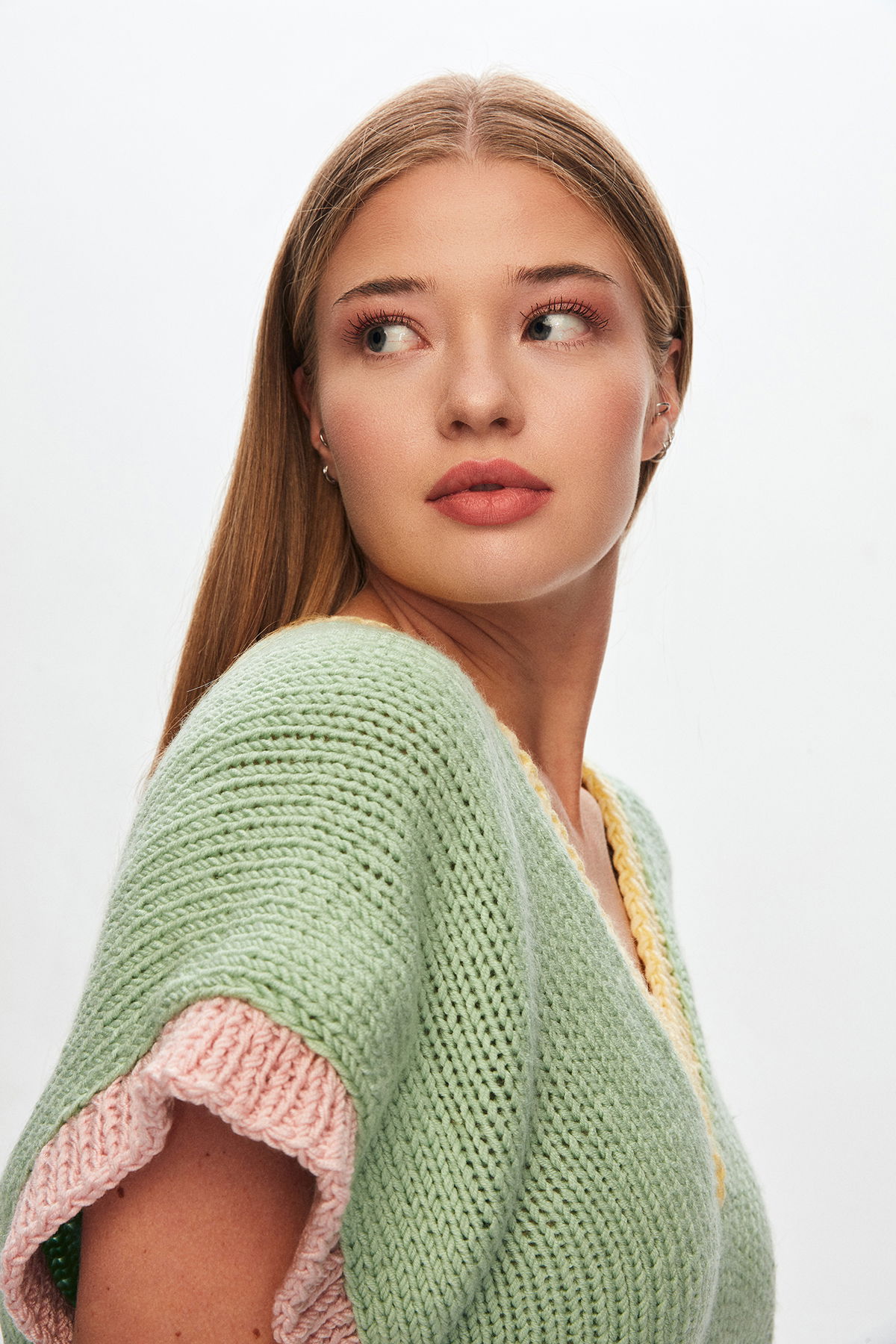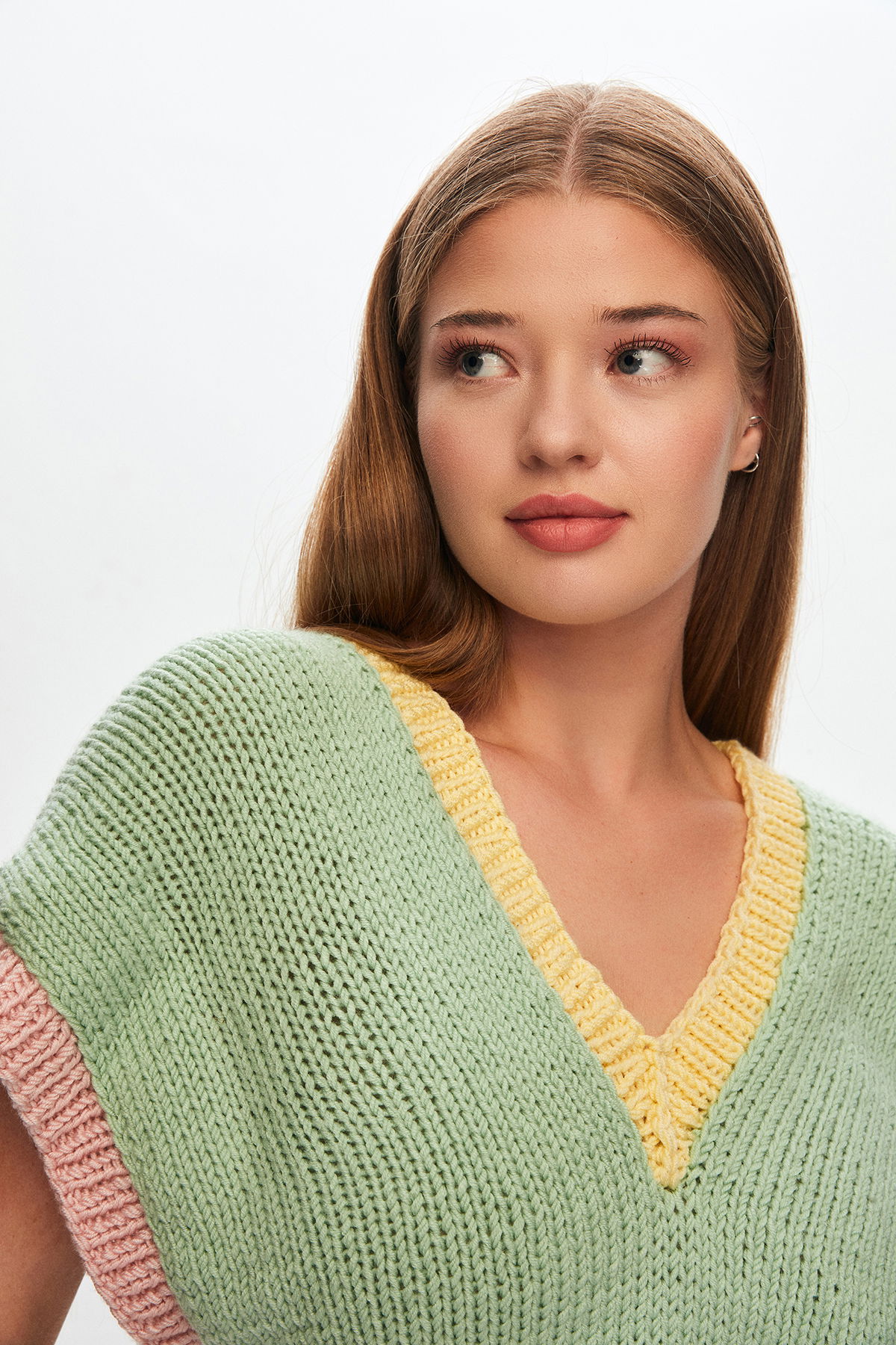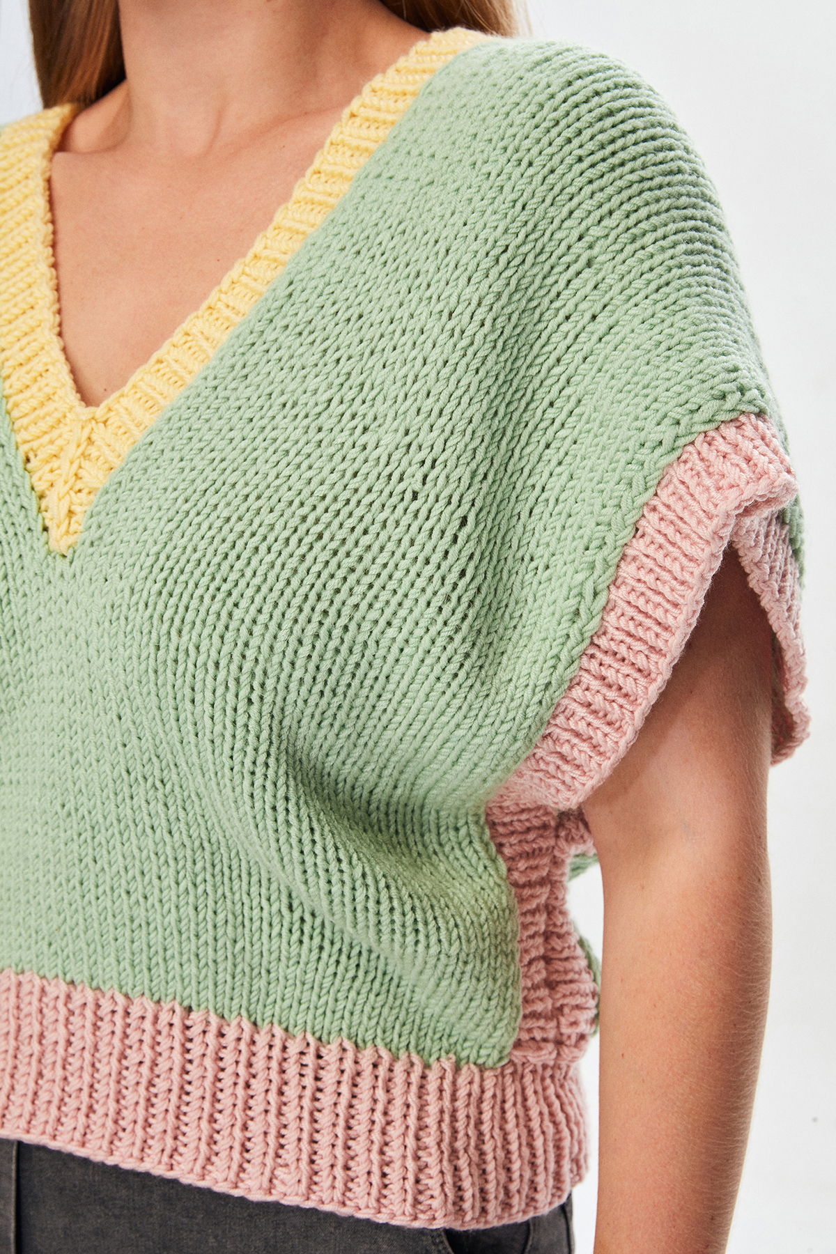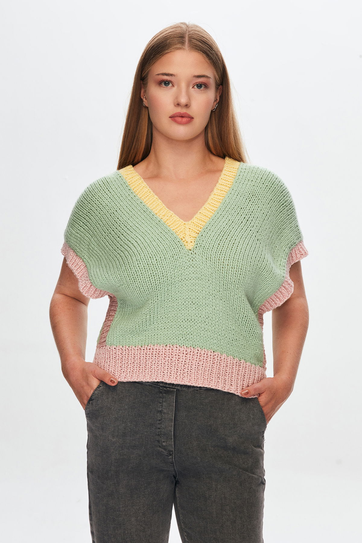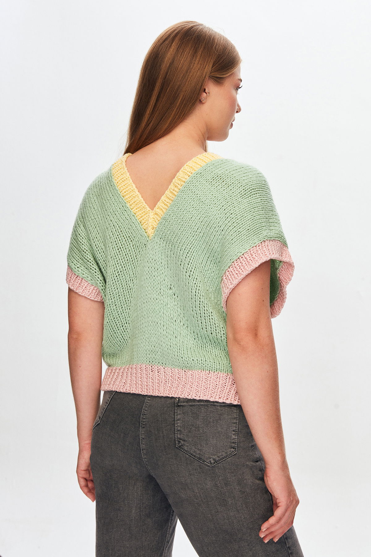 El Örgüsü Renkli V Yaka Süveter